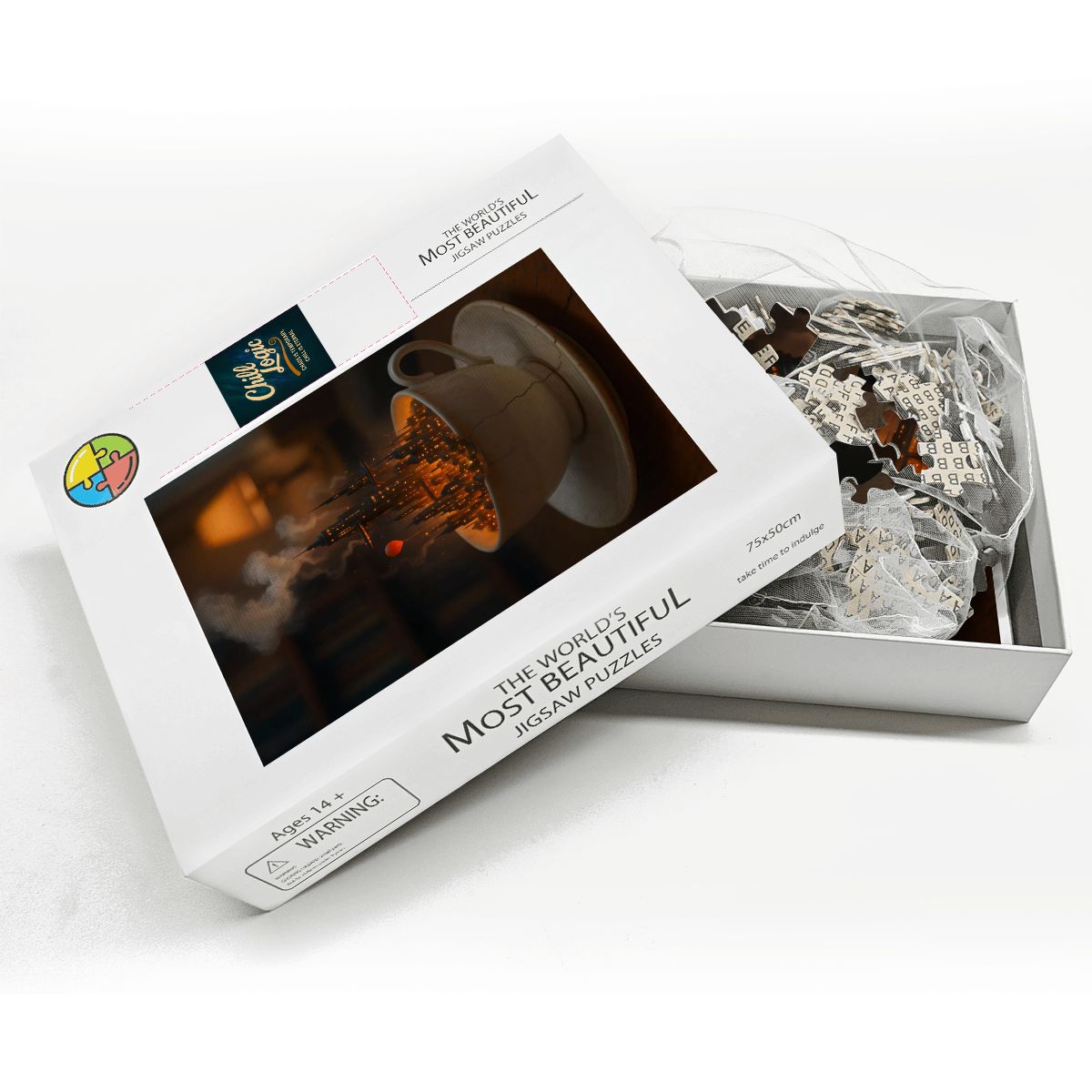 With each piece, you'll build toward a cozy apocalypse—equal parts bedtime story and bureaucratic fever dream. The lighting is warm, the implications are not. And yes, that crack in the cup does feel like a metaphor for your current mental state. You're welcome.