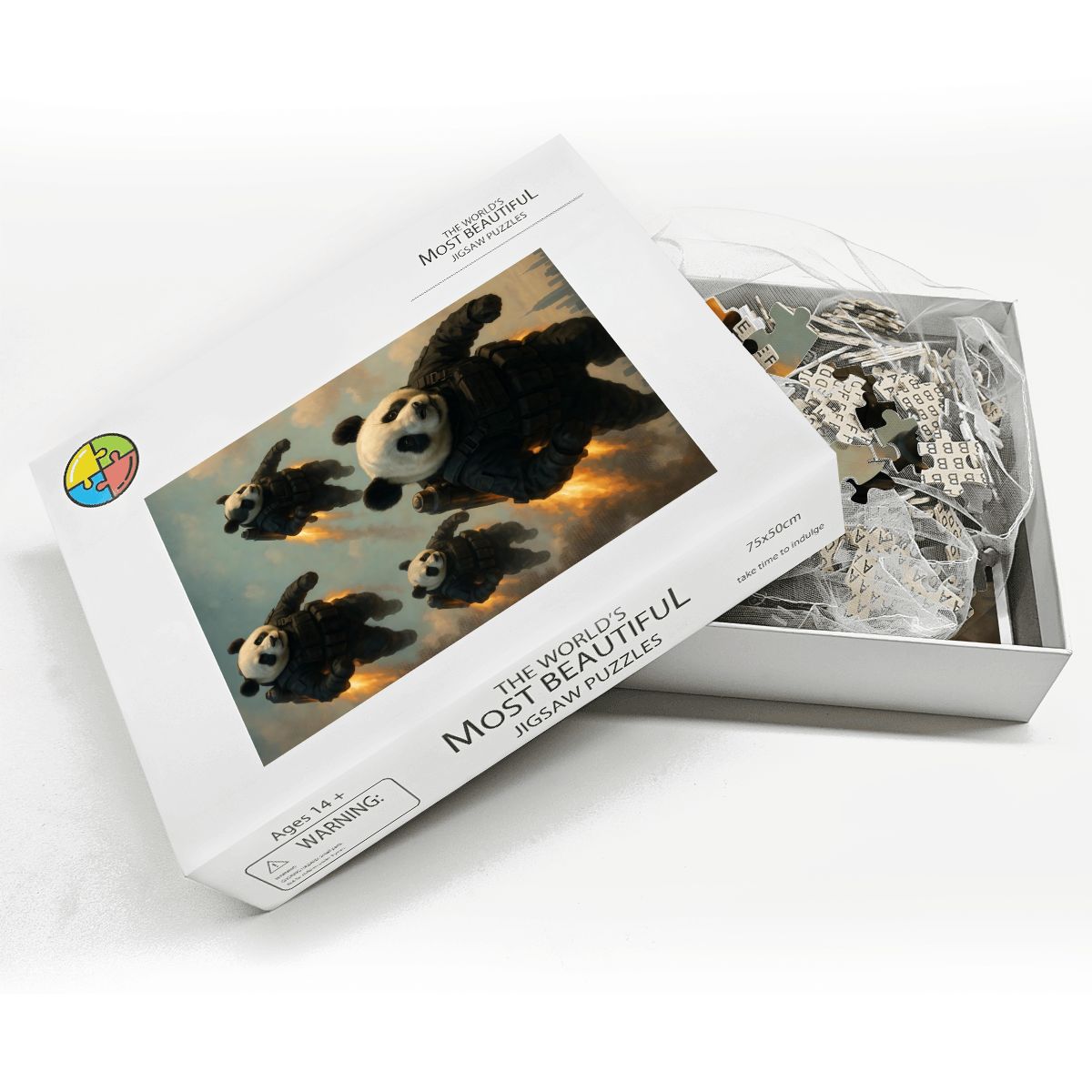 Every piece of this high-octane puzzle captures the chaos and glory of the world’s least likely special forces unit. Urban skyline? Check. Coordinated jet formation? Check. A team of heavily armored pandas who definitely trained in a bamboo dojo? Obviously.