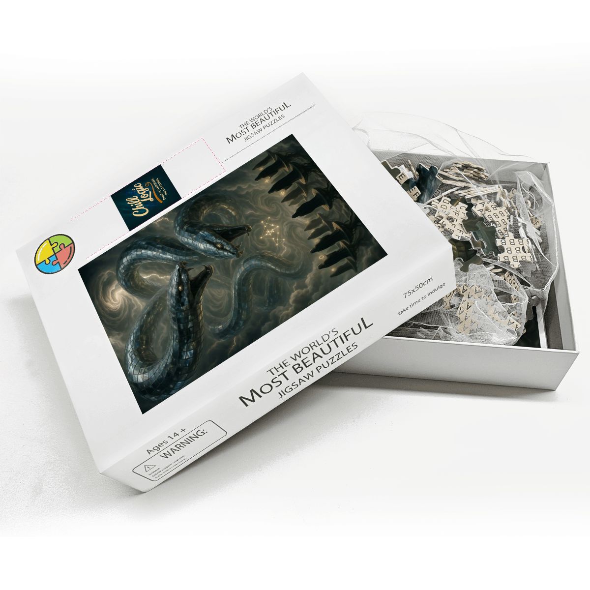 Every piece locks you deeper into a fevered theology of teeth and prophecy. The atmosphere is electric, the cult is thriving, and the snakes? The snakes are older than light and twice as cranky. This puzzle doesn’t end with a completed image—it ends with a whisper.
