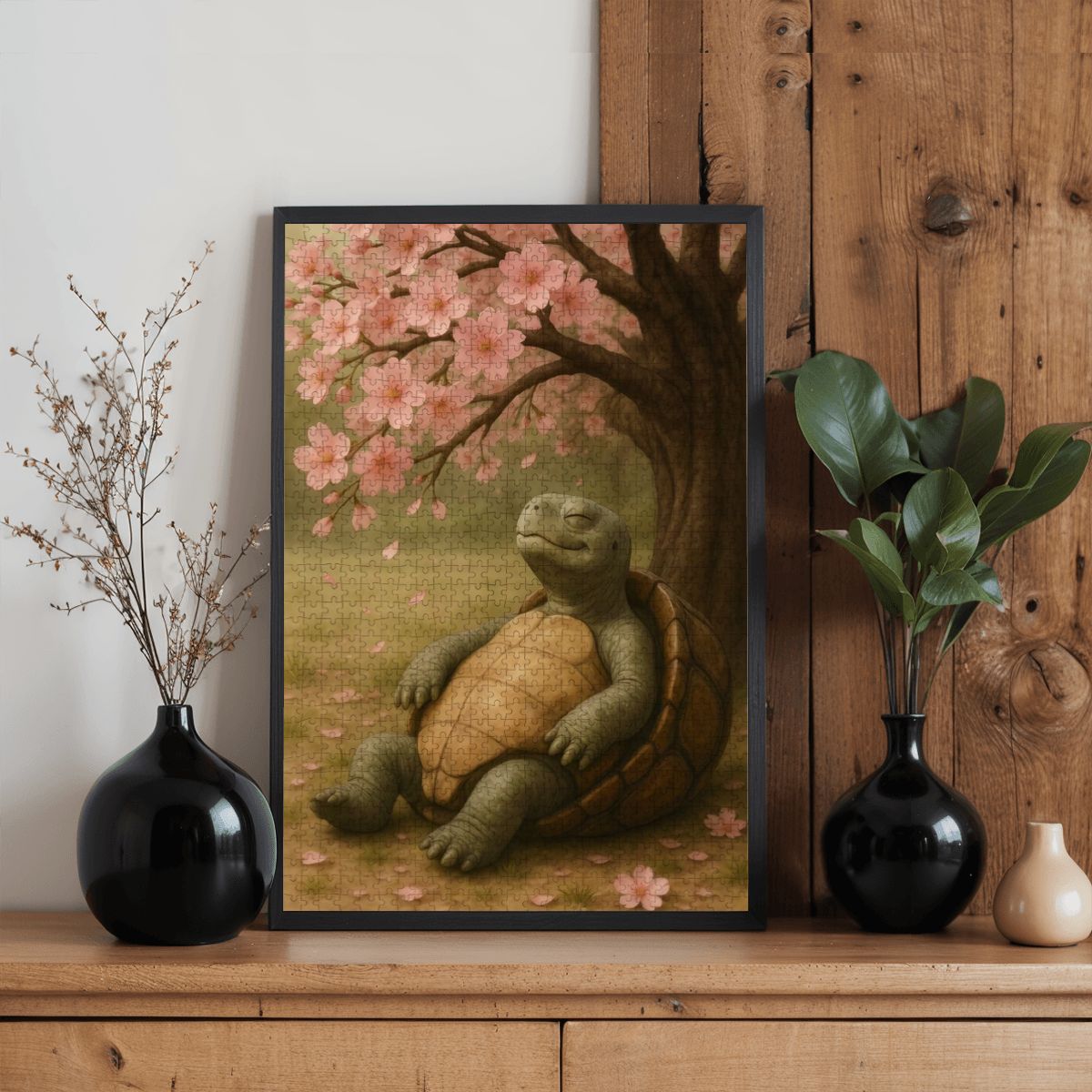 This turtle didn’t find enlightenment. He napped his way into it under a cherry blossom tree, armed only with patience, thick skin, and the absolute refusal to be rushed. He is you, but better. And rounder.