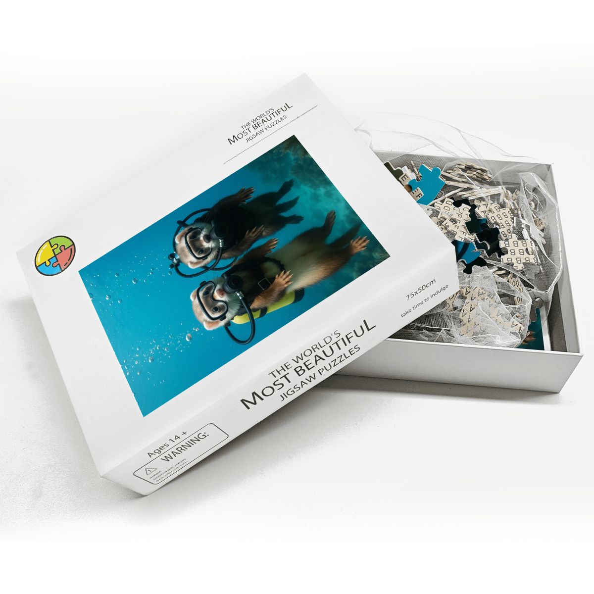 This puzzle brings you underwater serenity and absolute chaos in the form of tiny paws and high-pressure air tanks. From the detailed scuba masks to the subtle reef background, every piece is a treasure—unless you drop one, in which case it’s gone forever like Atlantis.
