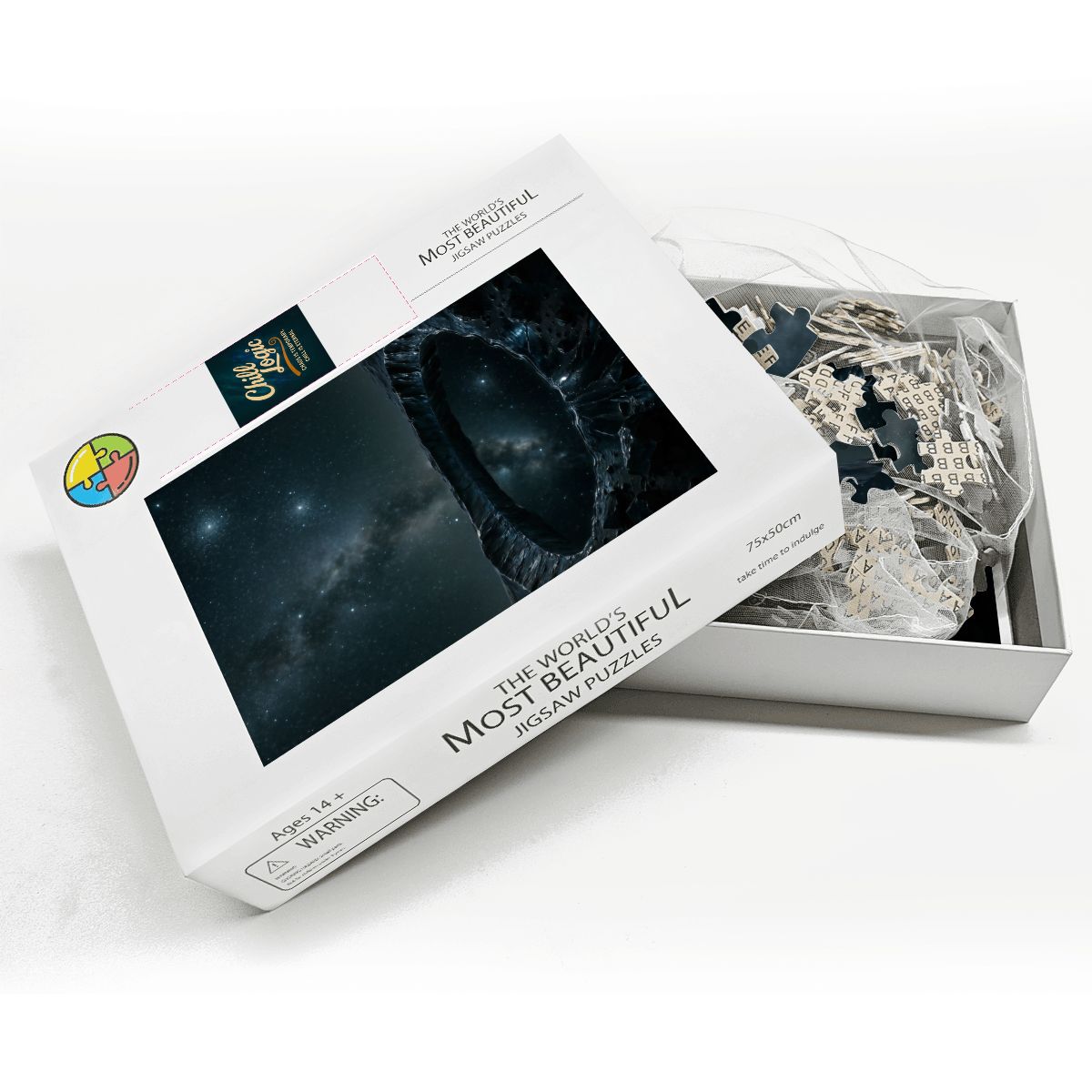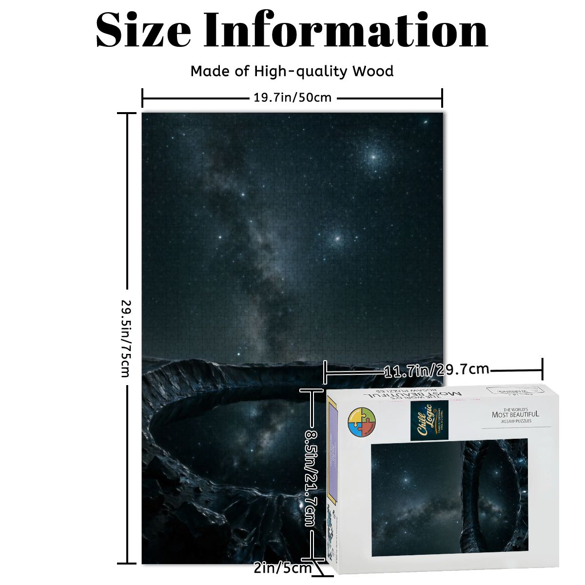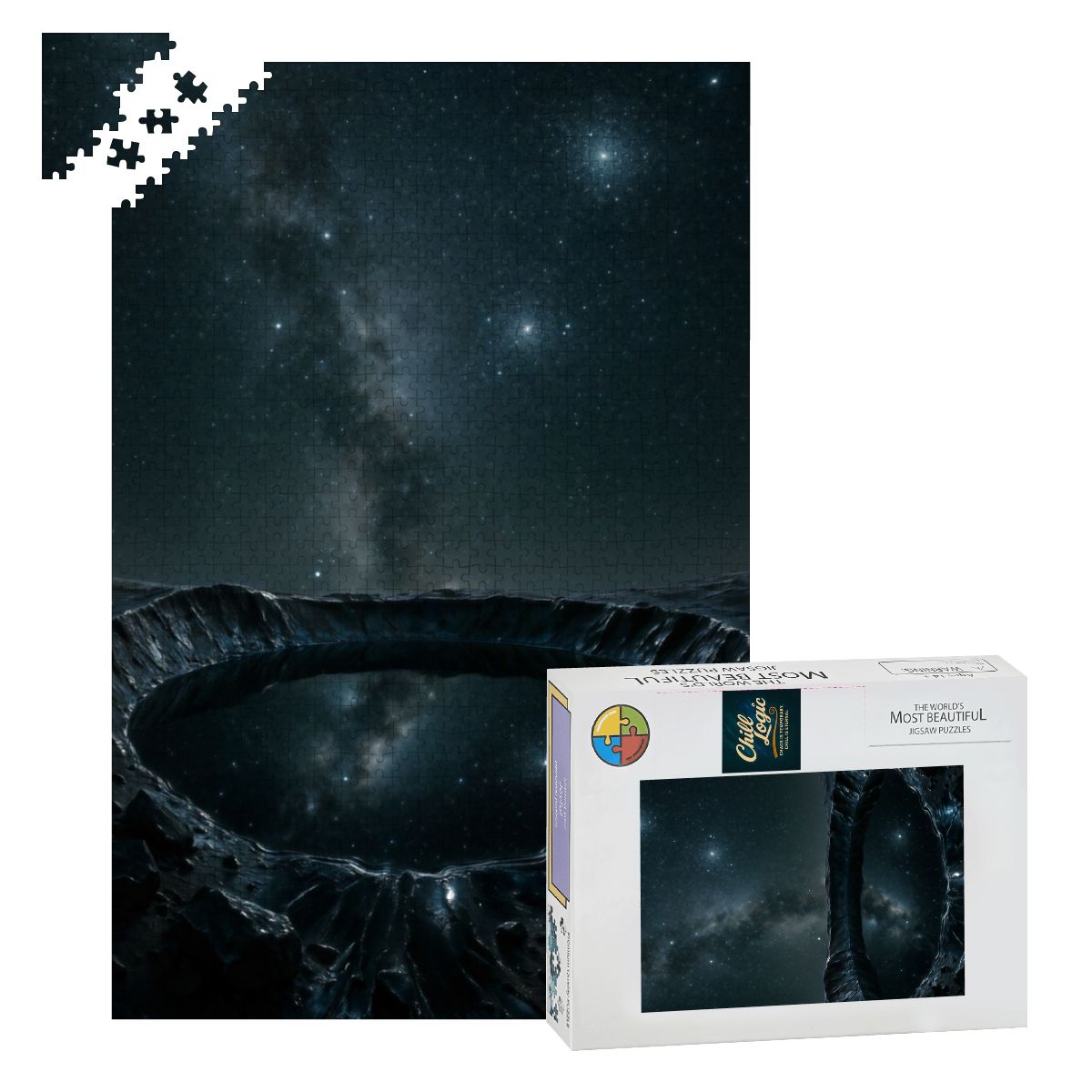 A cosmic mirror, a black lake, or the universe staring back at itself—this puzzle is pure vertigo in cardboard form. A crater rim circles an impossibly still pool, reflecting galaxies so perfectly that you’ll swear the pieces are duplicated. Is the sky above, or below? Does it matter? (Spoiler: not when you’ve been staring at it for 6 hours straight.)